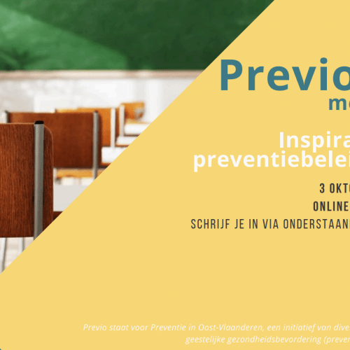 Vanuit Previo (Preventie in Oost-Vlaanderen) organiseren we 3 keer per jaar PrevioPraat met jeugd(welzijns)werk. We richten ons op iedereen die werkt met jongeren in hun vrije tijd. Tijdens een online vragenuurtje dompelen we jullie onder in een thema rond geestelijke gezondheid.